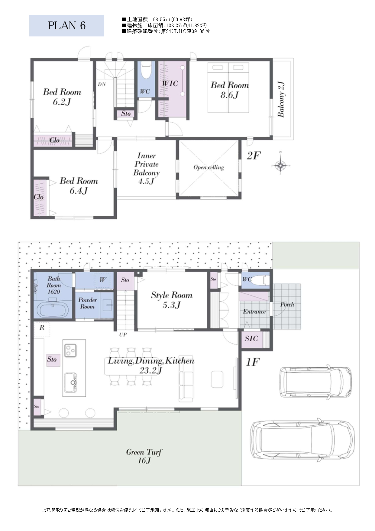 建物面積 | 132.06㎡(39.94坪)〜 138.27㎡(41.82坪) |